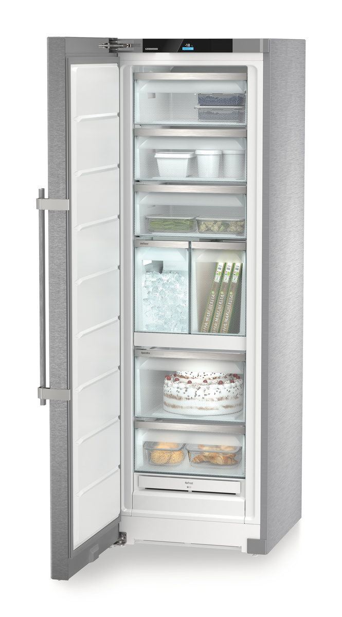 Gefrierschrank mit NoFrost, SmartSteel, Touch & Swipe-Display, IceTower, LED-IceMaker-Beleuchtung, Eiswürfelschaufel, SoftSystem, EasyOpen, Stangengriff (mit integrierter Öffnungsmechanik), InteriorFit, Sockelkonzept , SuperSilent, LED-Gefrierteilbeleuchtung, SpaceBox, Schubfach mit komfortabler Neigungsfunktion
